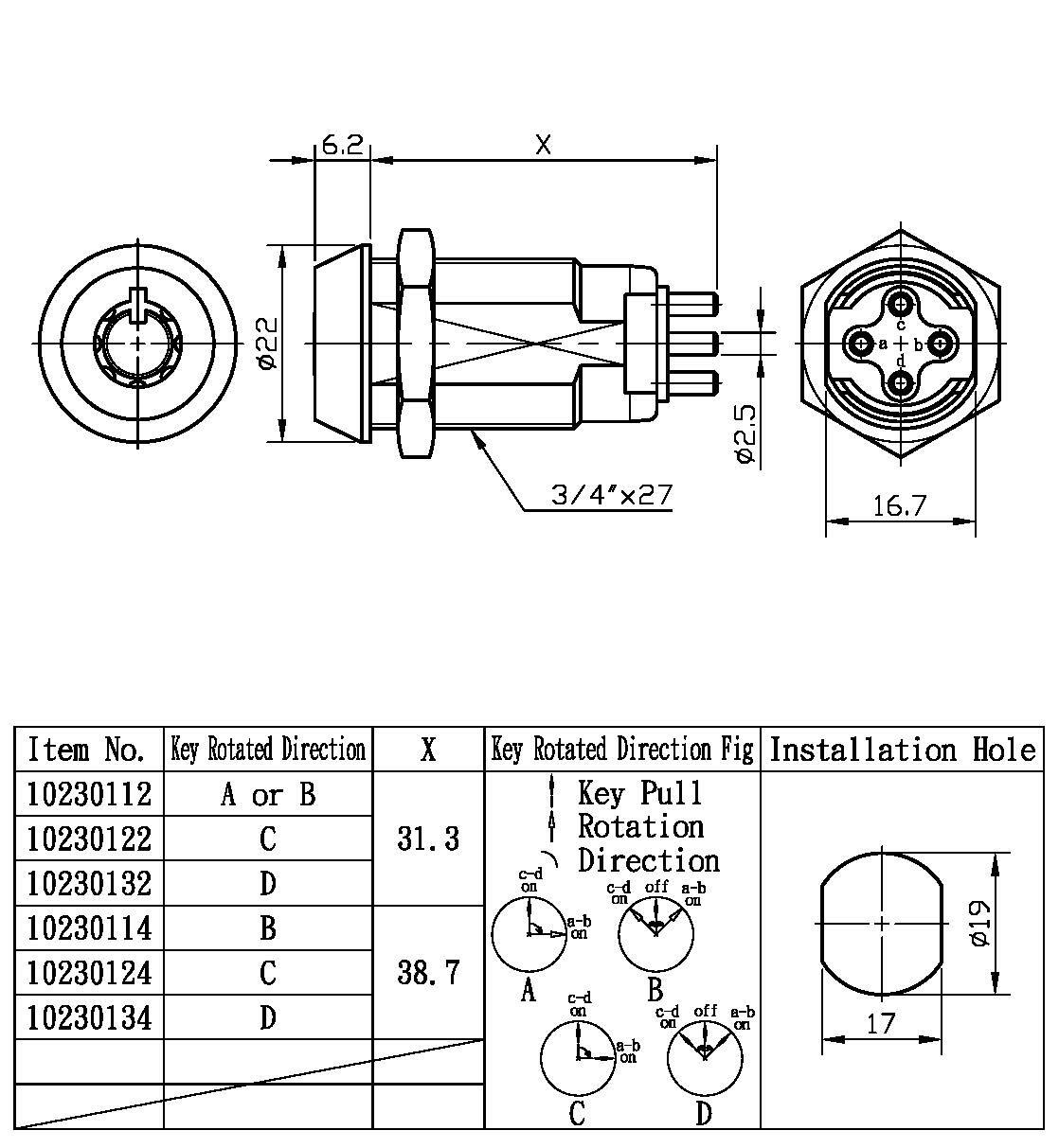 Cerradura de interruptor de llave de casino