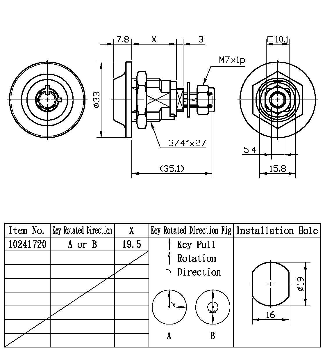 4. Casi las mismas especificaciones que la cerradura de leva Pagoda 101481, excepto que el cabezal de la cerradura es un poco más grande.