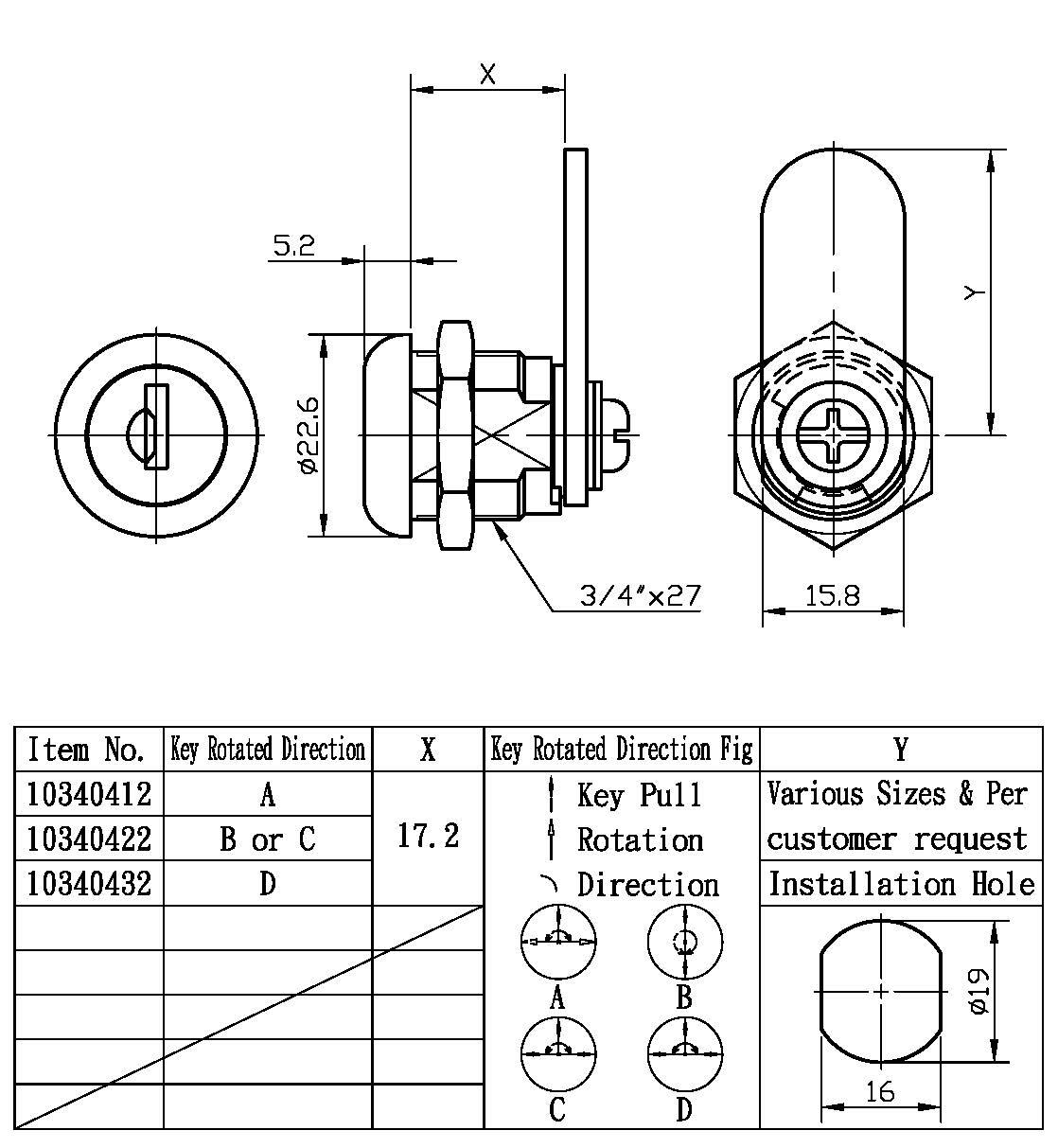 4. Casi las mismas especificaciones que la cerradura de leva Pagoda 101481, excepto que el cabezal de la cerradura es un poco más grande.