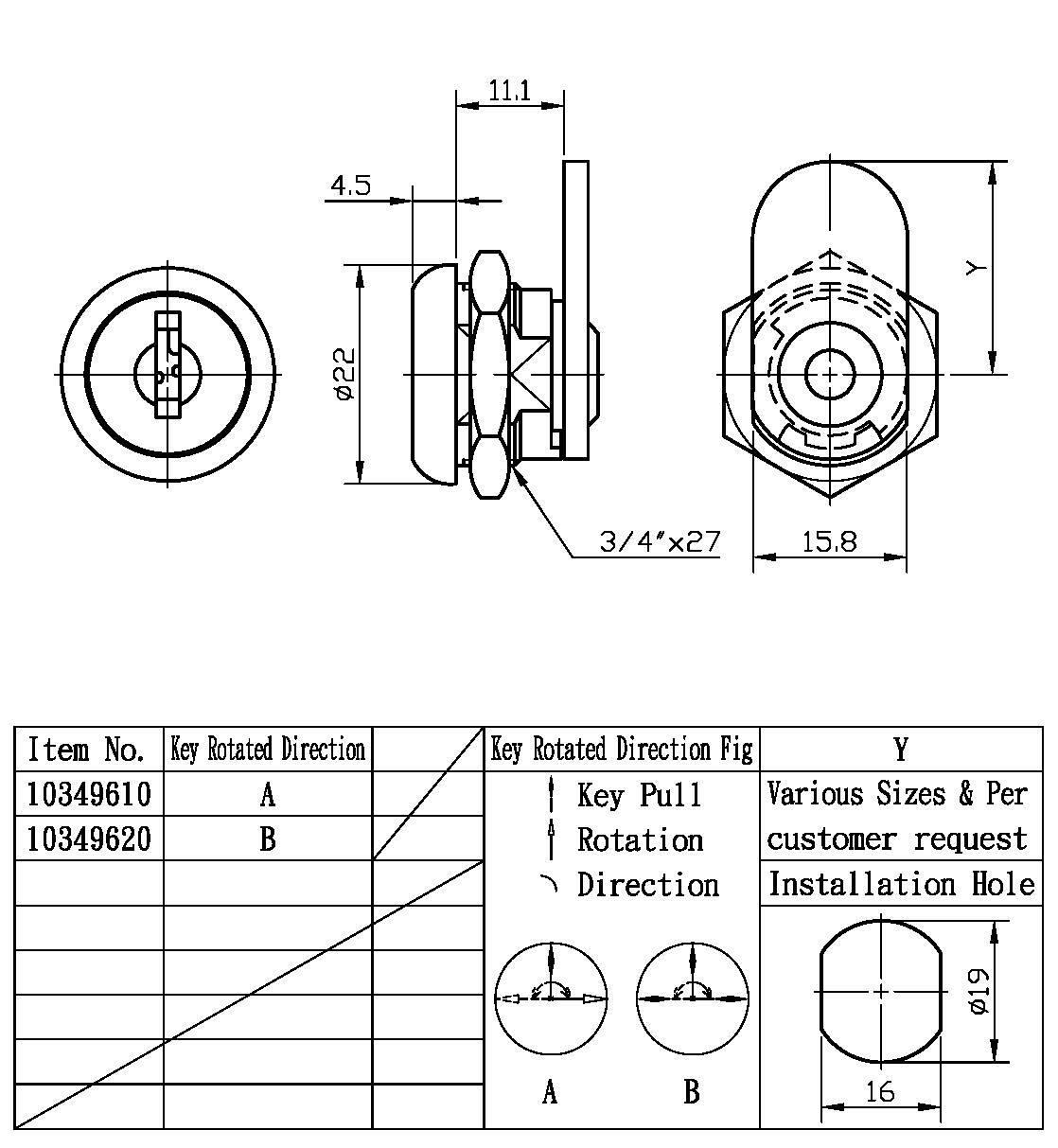 6. Accesorio: tuerca y leva (leva "Y" según solicitud del cliente, como referencia).