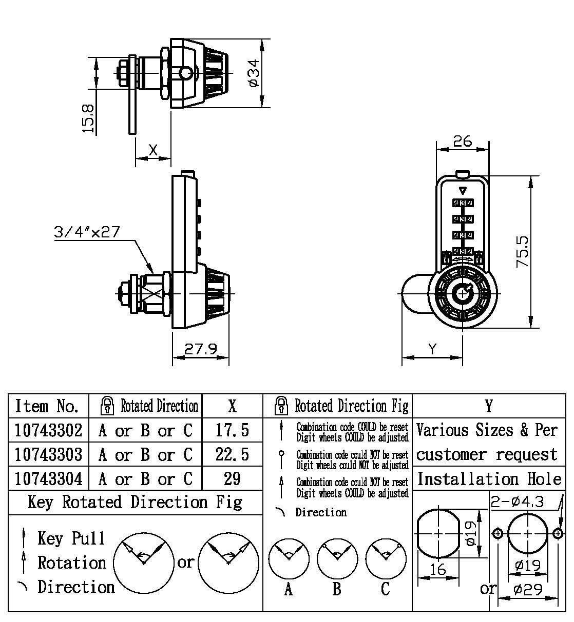 3. Con diseño de 4 ruedas (los clientes pueden cambiar los códigos de combinación)