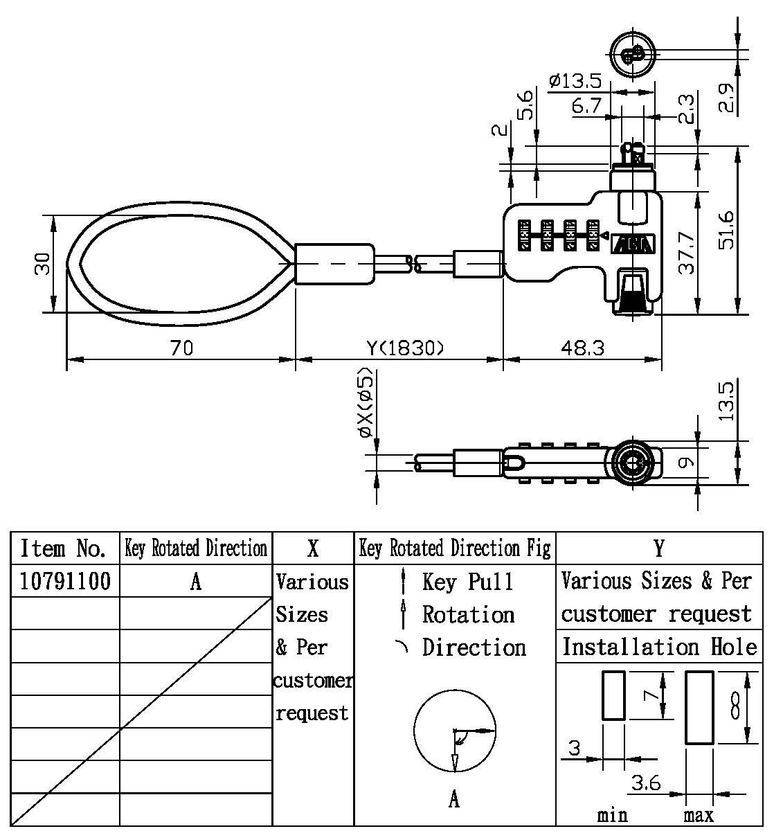 Cerradura de cable de combinación con llave