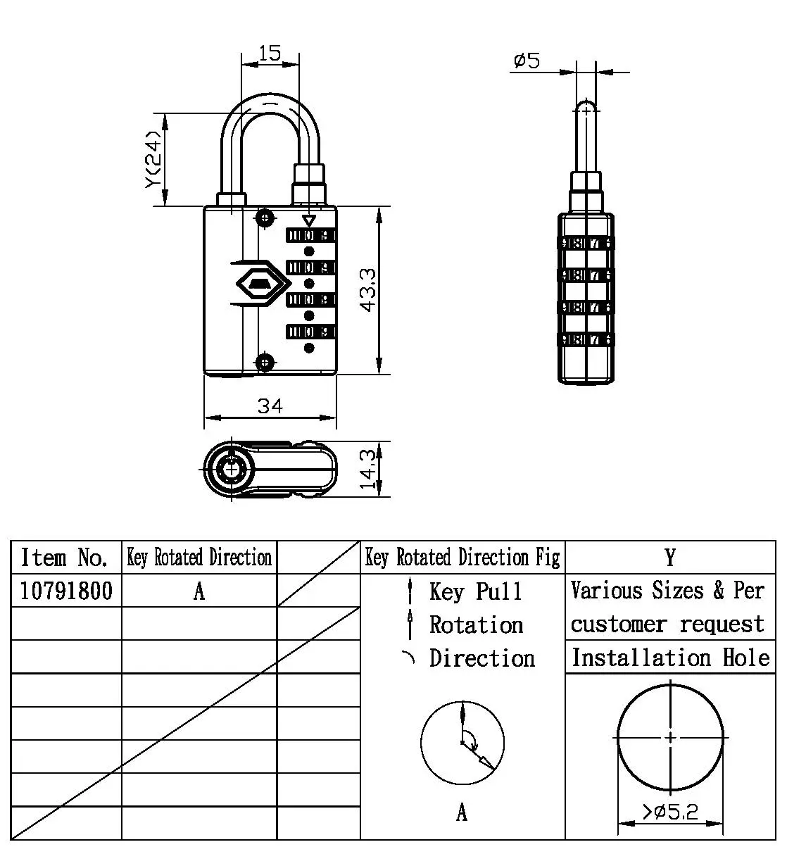 Candado de huella dactilar con combinación